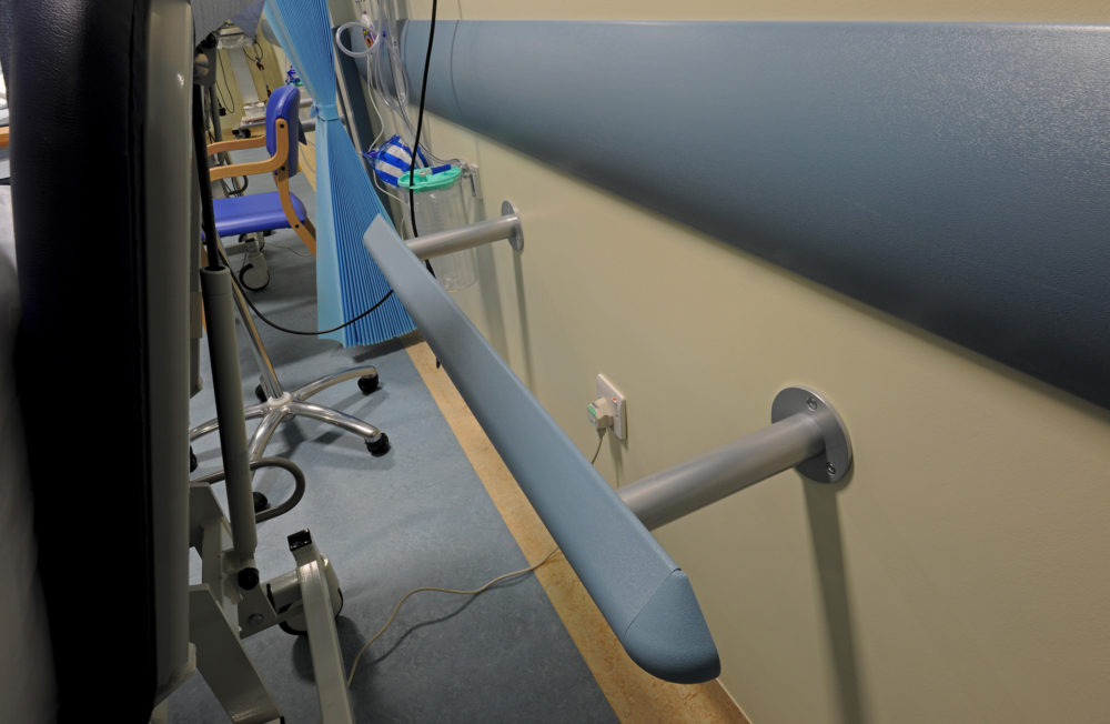 Horizontal bed head protectors designed to prevent damage to wall and wall mounted equipment from frequently moved beds.